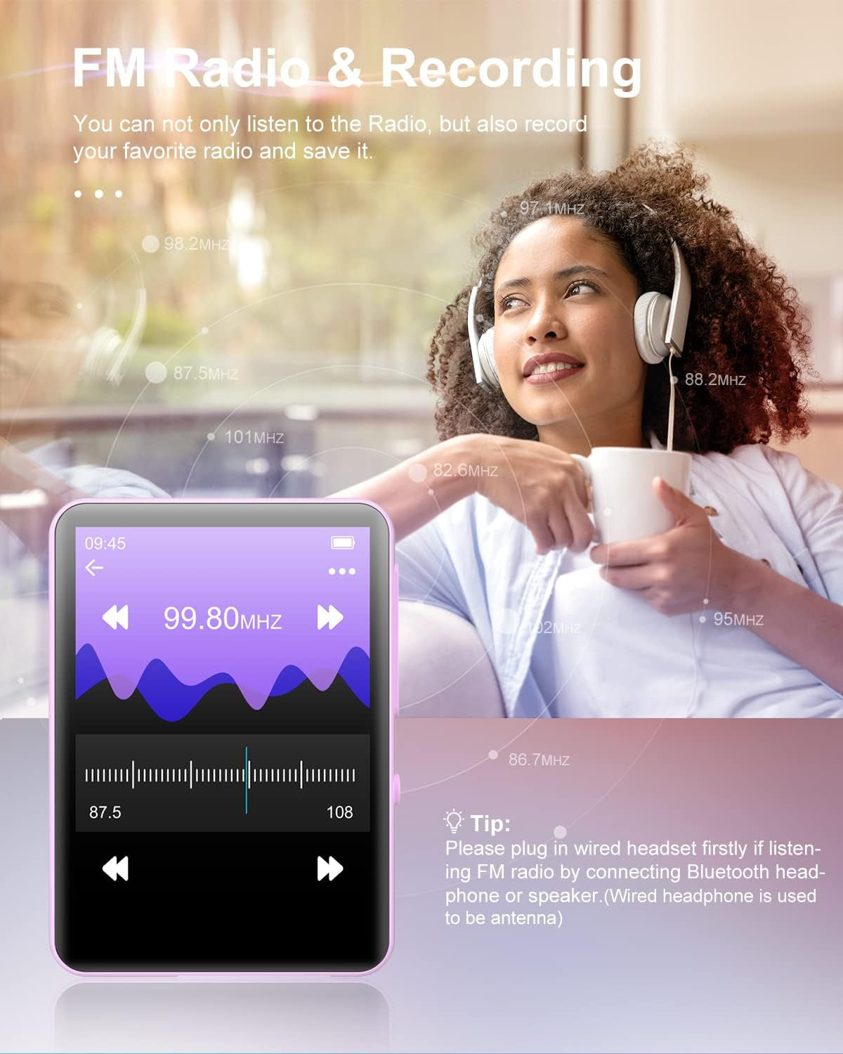 • 💎【Multifunctional MP3 Player for Many Occasions】Our MP3 player offers a range of functions, including music playback, FM radio (need to insert a wired headphones as antenne), voice recorder, e-books, pictures, videos, alarm clock, and 28 language options. It's perfect for sports, travel, sleeping, reading, learning, meetings, etc.