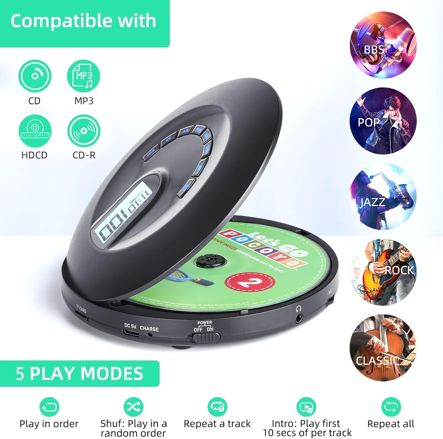 - 【High Quality Material】: The backlight buttons and LCD display design make it possible to be used in dark environments. Over 10 years of professional audio production experience, the CD player owns simple, ergonomic, anti-slip and compact design. You can enjoy music anytime, anywhere.