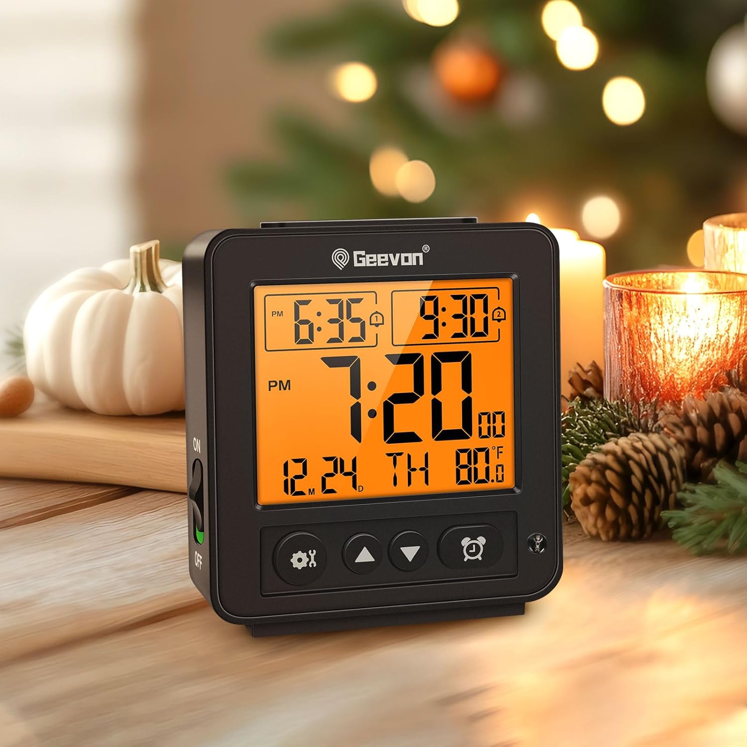 - 【Portable & Battery Operated 】The Geevon small travel alarm clock battery operated measures 3.5 (L) * 1.4 (W) * 3.8 (H) inches, small and light.It is an easy cordless battery small alarm clock, powered by 2 AA batteries (not provided) . It can also be used as a travel alarm clock