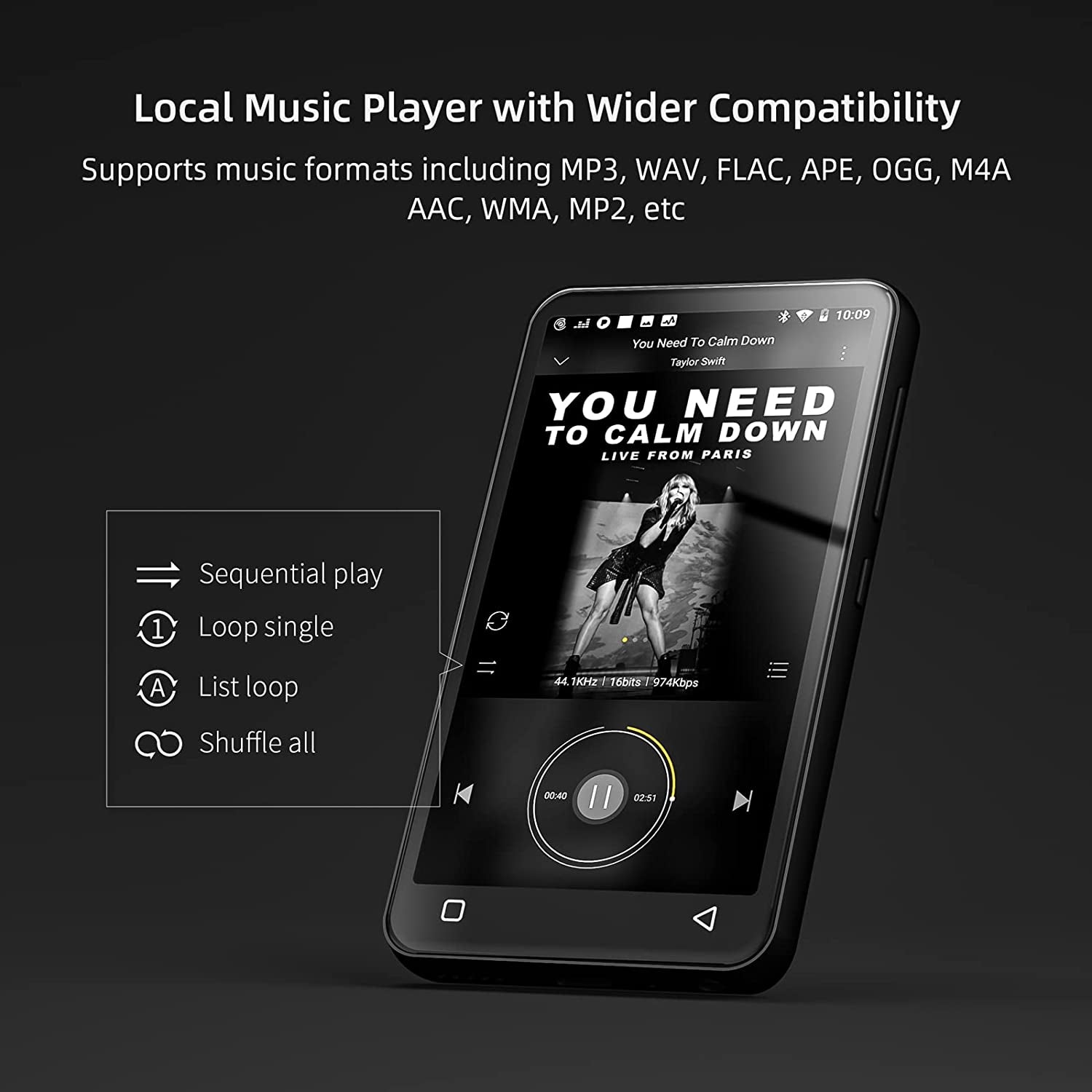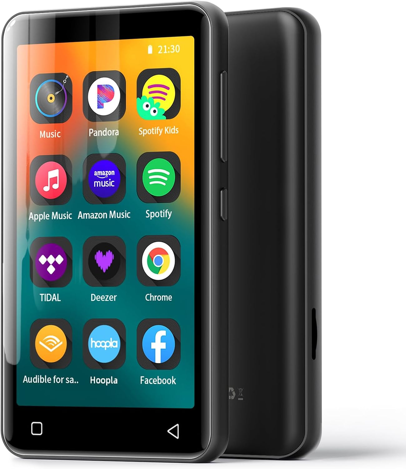 - šMultiple Music Options-This mp3 player with bluetooth and wifi comes with powerful local music player and a nice variety of preloaded music app which including Spotify, Pandora, Spotify Kids, Tidal, Deezer, etc. The mp3 is perfect for when you're either on the go, in the gym, or just at home reading, studying, or just plain meditating/relaxing/sleeping.