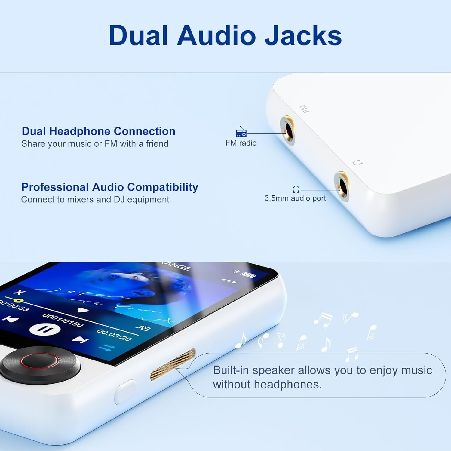 - 【Built-in Speaker - Versatile Listening】Our MP3 player is equipped with a built-in HD speaker. Say goodbye to the discomfort of wearing earphones. Enjoy music freely without earphones. When you desire a private listening experience, simply plug in your headphones and immerse yourself. With this feature, you have the flexibility to choose your listening style, whether it's sharing music with others or enjoying it on your own.