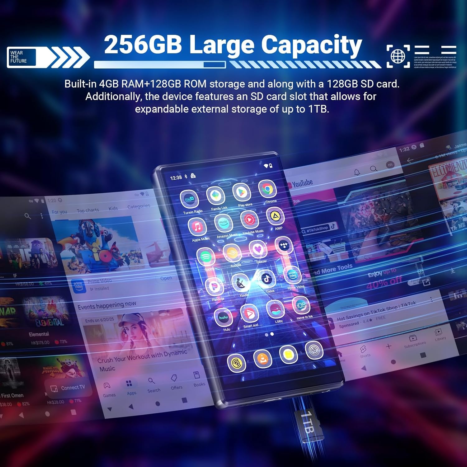 • 「 Massive Storage, Music Freedom 」:A huge amount of space for storage, with 128GB of internal ROM and 128GB of memory card expansion, for a total capacity of 256GB, a huge amount of content can be loaded as you wish, and the freedom of music is at your fingertips. Flexible expansion, storage without boundaries, support can be expanded 1TB.
