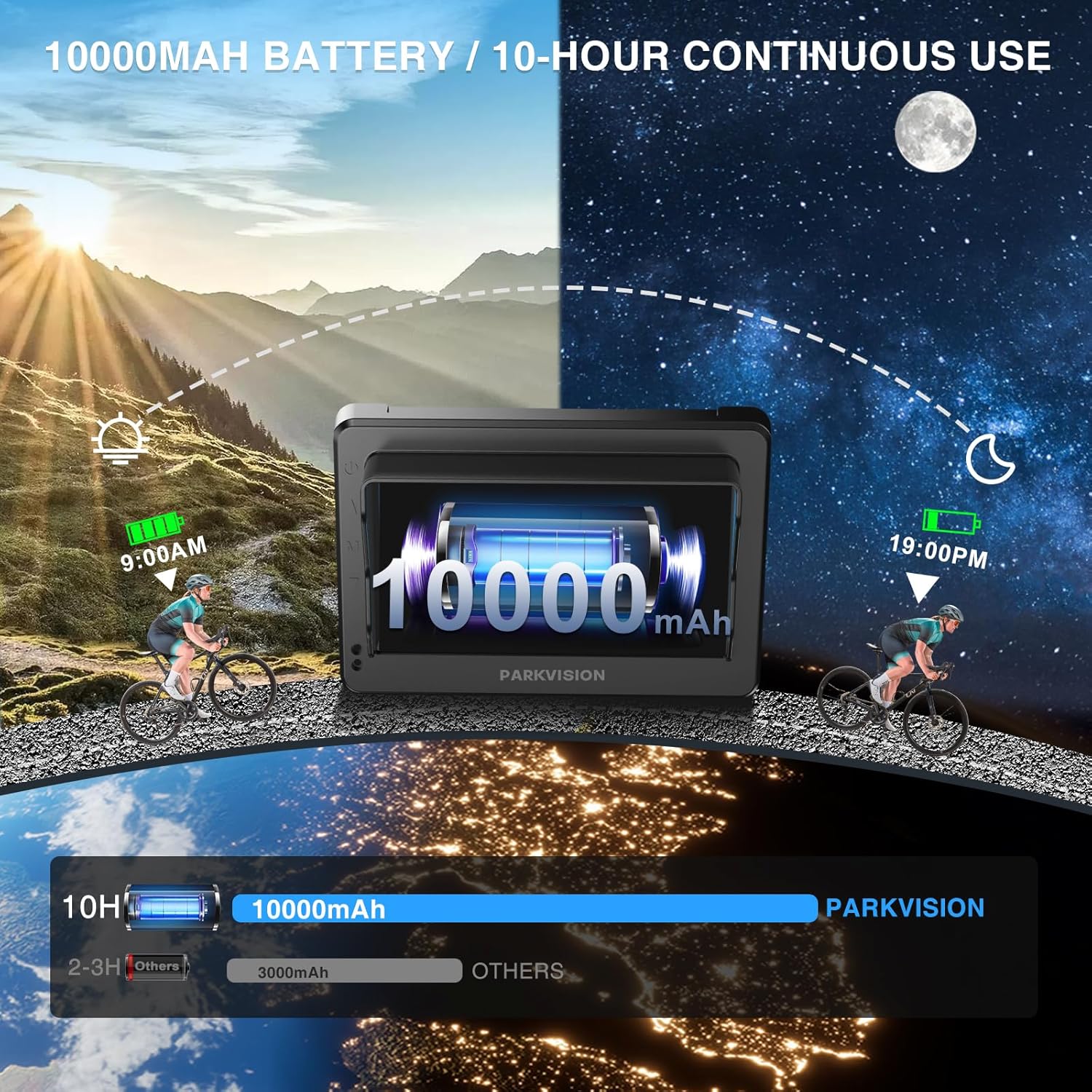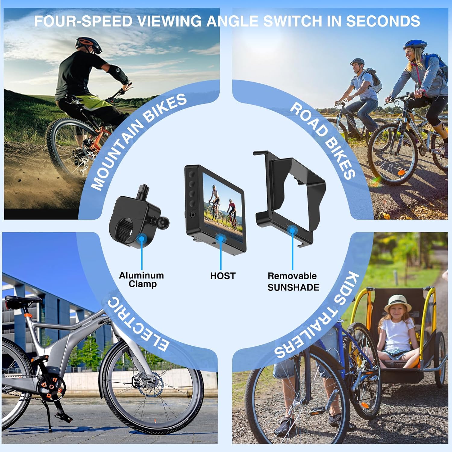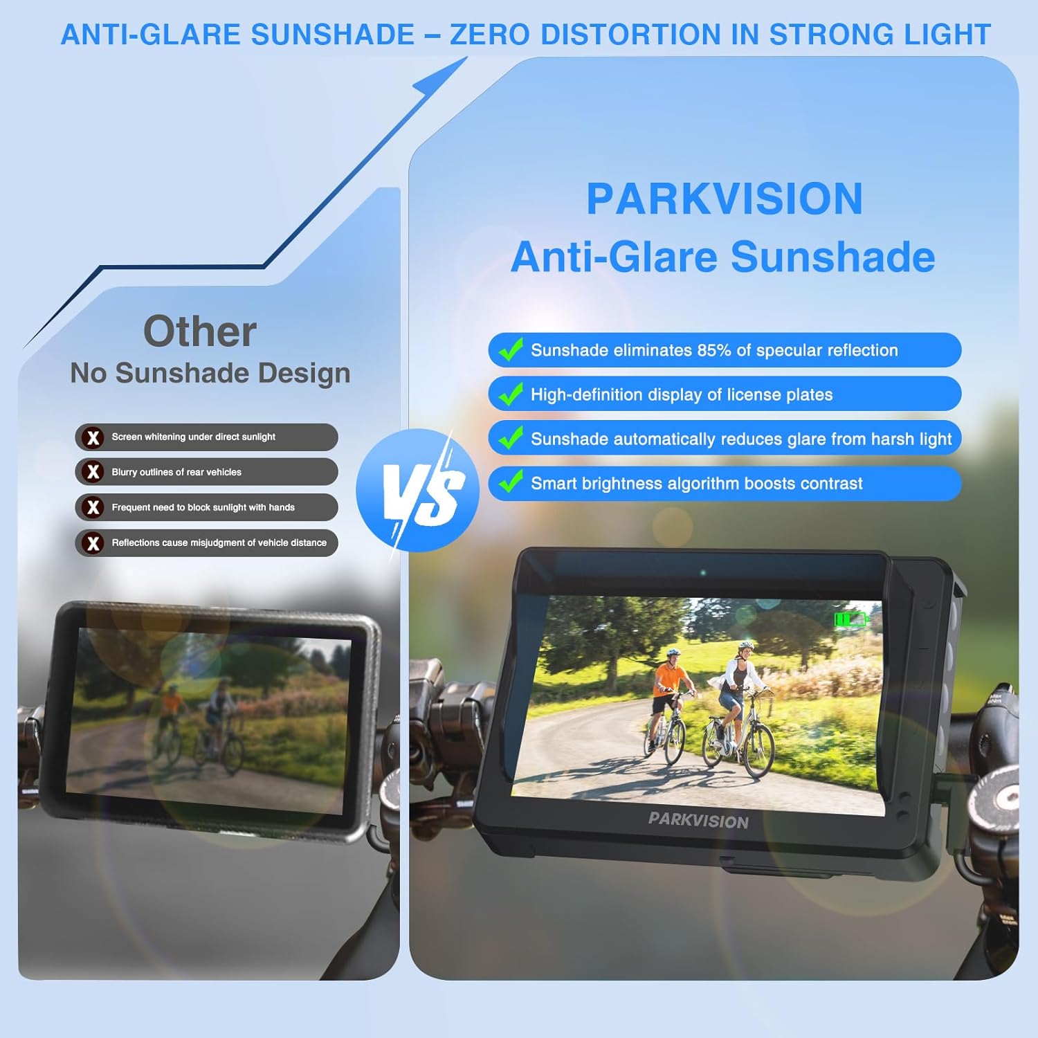 - 1080P Ultra-Bright Sunlight-Ready Display with Bike Rear Camera: Patented sunshade design ensures crystal-clear visibility on the 4.3-inch 1000-nit monitor, even under harsh outdoor lighting. Ideal for cyclists prioritizing screen readability in direct sunlight