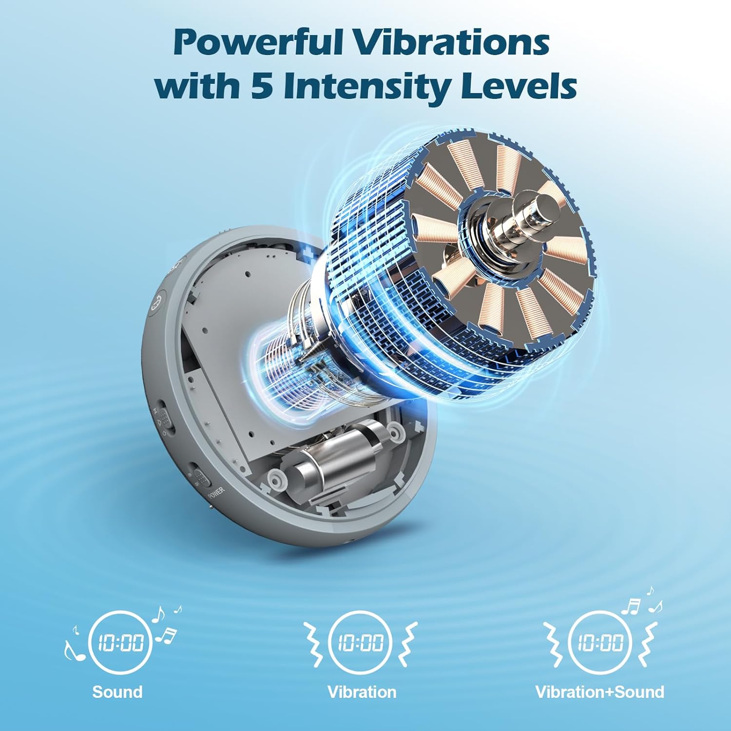 ๐“๐ซ๐ฎ๐ž ๐‚๐จ๐ซ๐๐ฅ๐ž๐ฌ๐ฌ ๐…๐ซ๐ž๐ž๐๐จ๐ฆ: No wires, no limits โ€“ our vibration alarm clock features a fully integrated bed shaker design and a powerful 29-hour rechargeable battery, letting you place it directly under your pillow for silent, seamless wake-ups without any plugs or cords ๐”๐ฅ๐ญ๐ซ๐š ๐‹๐จ๐ฎ๐ ๐Œ๐จ๐ซ๐ง๐ข๐ง๐  ๐€๐ฅ๐ž๐ซ๐ญ: Super loud 104 db...
