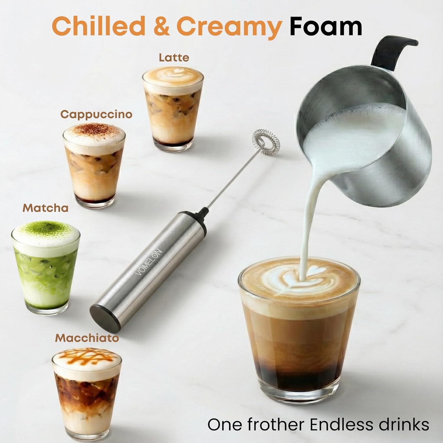 - 【High Speed & Get Cream Fast】-Our powerful portable milk frother handheld can make foamed milk and create froth in 15 seconds or less. This rechargeable milk foamer is ideal for coffee, latte, cappuccino, matcha, hot chocolate,. The drink mixer also works well with both hot and cold drinks or protein shakes.The ergonomically designed handle gives you more soft touch.