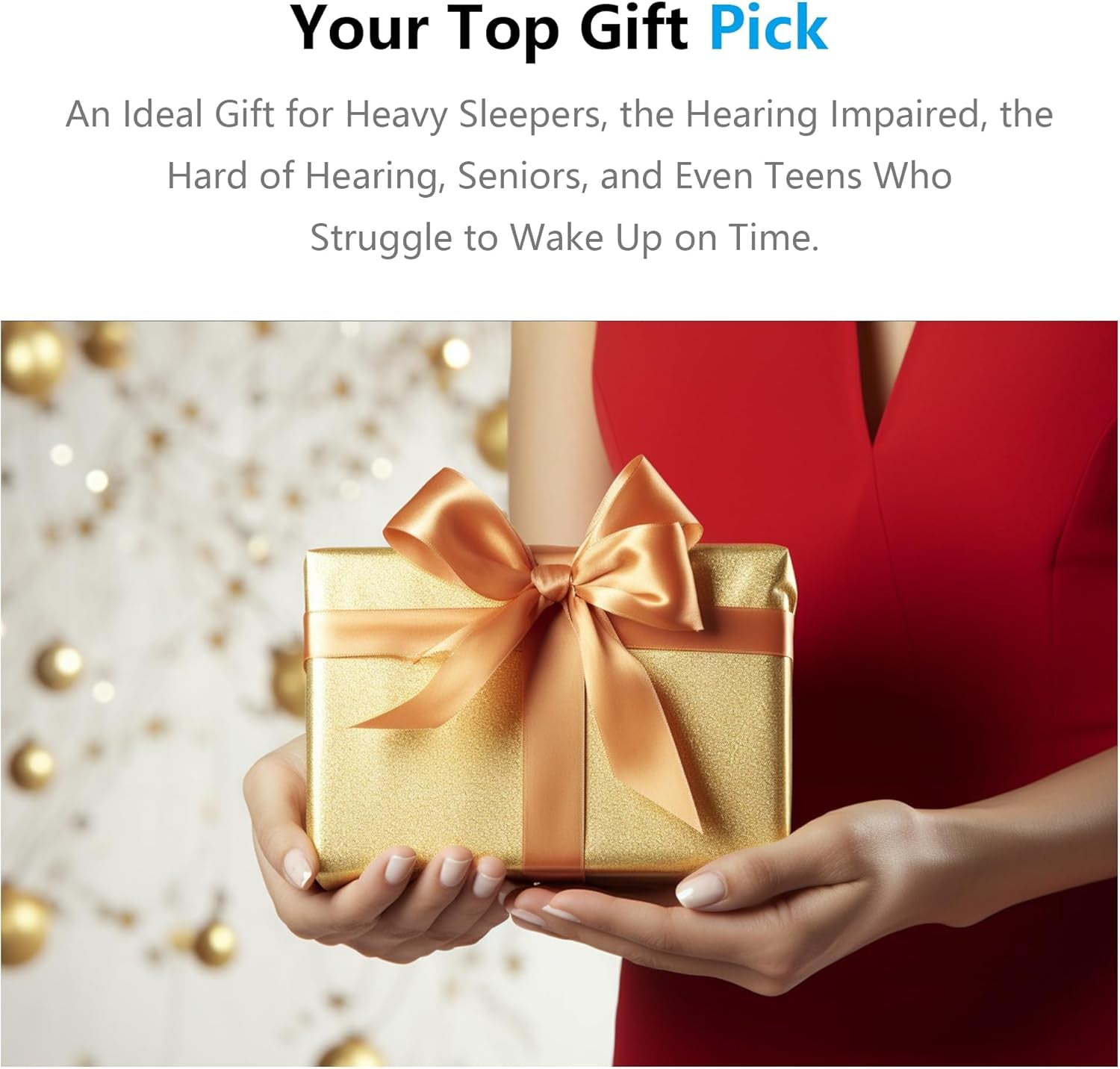Vibrating Alarm Clock for Heavy Sleepers, Rechargeable Battery Operated Bed Shaker under Pillow, Vibration Adjustable, Wireless,Dual Alarms,Backlight Travel Portable Digital Clock for Hearing-Impaired