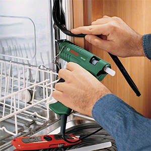 Easy handlingThis hot glue gun is built with reinforced polyamide housing and weighs just 350 g which, in combination with its streamlined design, means that it fits very comfortably in your hand. In addition to this, the extra-length nozzle also makes it possible to create adhesive bonds in hard-to-reach areas. |