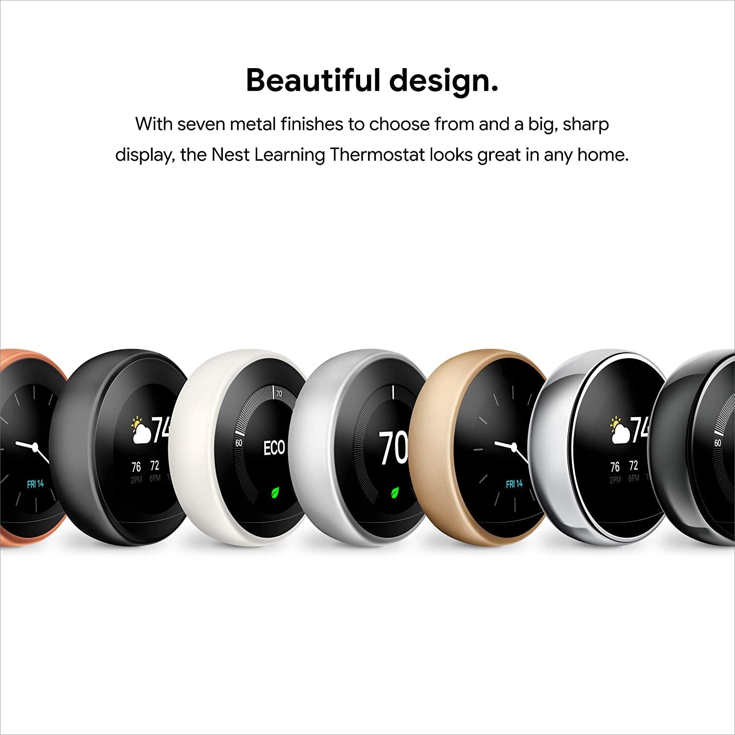 Google Nest Learning Thermostat - Programmable Smart Thermostat for Home - 3Rd Generation Nest Thermostat - Works with Alexa - Copper