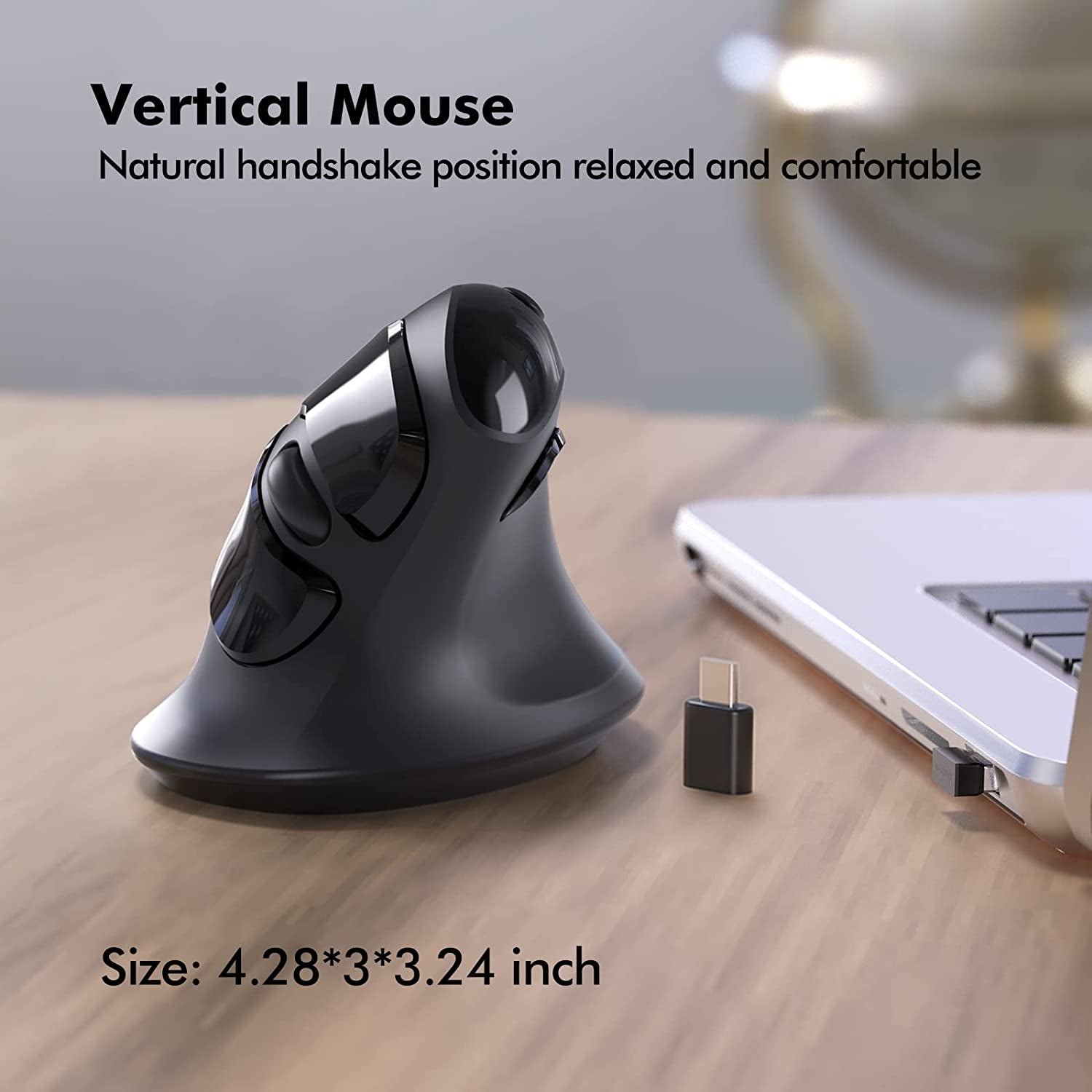 V03W vertical mouse comes with both USB-A and USB-C receivers, providing seamless compatibility with Apple, Windows, and other devices.