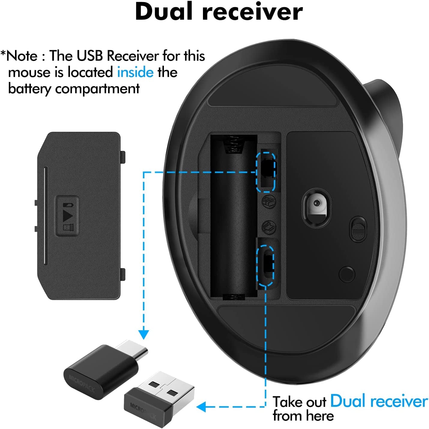 MicroPack Unique Vertical Ergonomic Wireless Mouse With USB A & Type-C Receiver