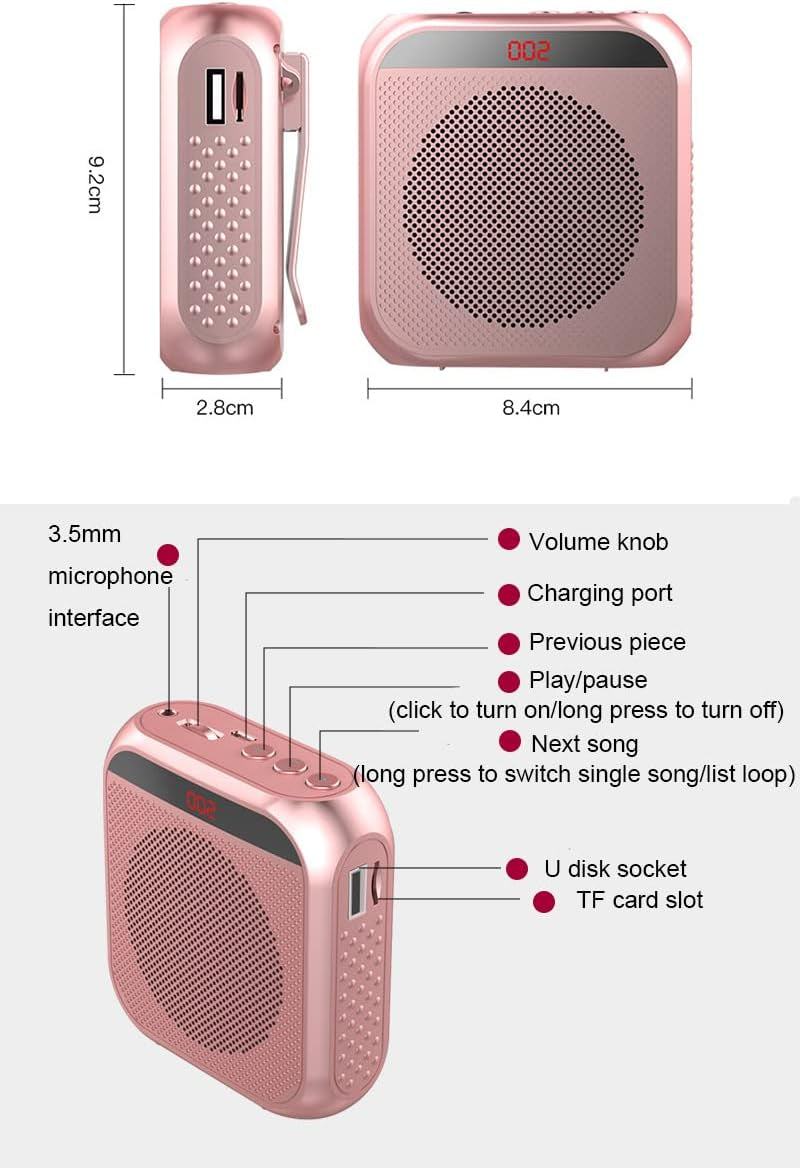 Portable Amplifier, Rechargeable Teacher Microphone, Mini Amplifier System, Classroom Microphone, Tour Guide, Yoga Outdoor